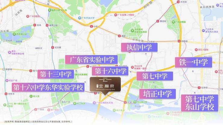 小学派位对口90%越秀省一级中学,其中60%示范性中学校本部,包括执信/省实/七中/十六中/培正/铁一中等名校;