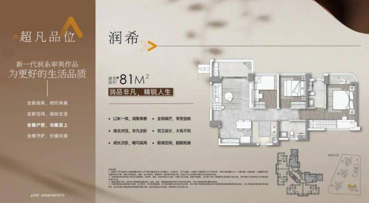 建面81平三房两卫,LDK一体化设计。可以做到三房带主套,还可将两间次卧打通实现两个大房间,主卧南北对流