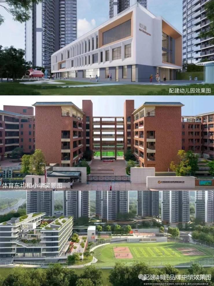 项目首开地块旁就有配建一所36班初中和一所9班公立幼儿园,目前都已经封顶。虽然现在初中还尚未确定具体是什么学校,但是有吹风会引入执信办学。项目目前已经确定业主子女可按就近入读政策,满足人户一致即可入读体育东教育集团均和小学。初中的话目前配建的还没开学,同时也可以参与摇号执信中学