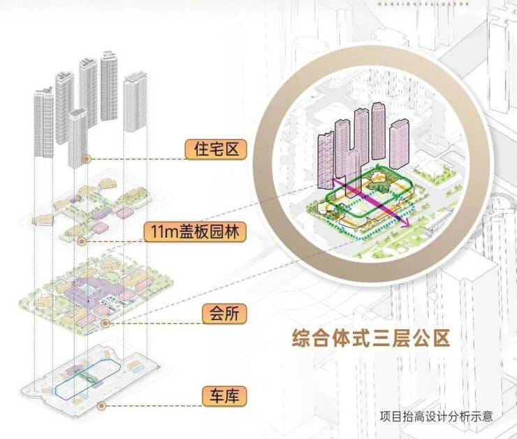 这个「超级底盘系统」的核心是将整个项目高高抬起,利用地面高差和入户层之间的纵向空间,实现“高度+规模+功能"的整体突破,呈现多项具有重大开创性的产品成果。