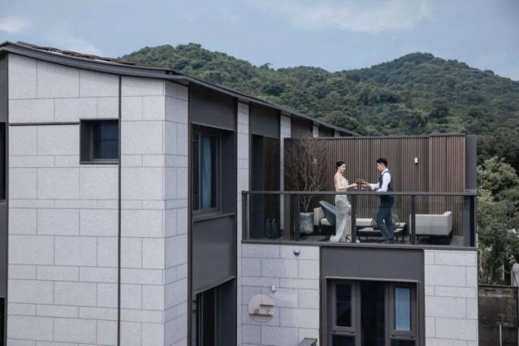 露台设计:双星空露台犹如悬于林端的观景框,夏可观星,秋可揽叶,成为绘画、茶叙或冥想的天然场所;