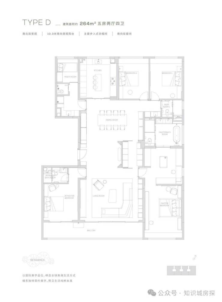 【264㎡户型】10.3米南向景观阳台-南北双景观-主套步入式衣帽间-独创灵动岛设计,生活场景多重切换