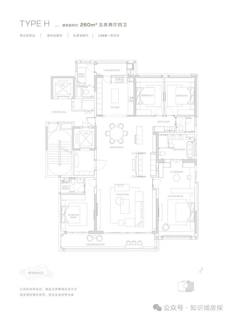【260㎡户型】南北双阳台-南向双套间-私家电梯厅-LDKB一体化