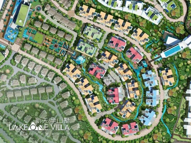 整个新天半山项目分为A、B、C、D、E共五个组团,目前A、C区别墅组团已经全部售罄;D区洋房组团还有少量高层复式洋房在售;B区别墅组团(即在售的新天半山墅)也还有少量独栋别墅在售;E区全新半山别墅组团(即新出的新天半山山顶道别墅)现正发售。