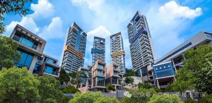 D区高层洋房组团呈半月牙状沿山势展开成为整个小区的背景,是整个小区最高景观最好的产品,站在高层可远眺白云山景和南湖湖景,目前D区高层洋房组团仅剩下少量超高层的复式单位,建筑面积约464-502㎡的毛坯复式洋房。