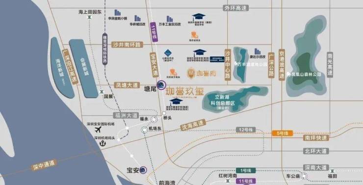 门口就是宝安大道及凤塘大道等交通主干道,11号地铁线“塘尾站”,距离约300米,4站到宝安机场,6站到宝中,7站到前海湾,8站到南山,11站到车公庙。鸿荣源珈誉玖玺家门口就是宝安大道及凤塘大道等交通主干道