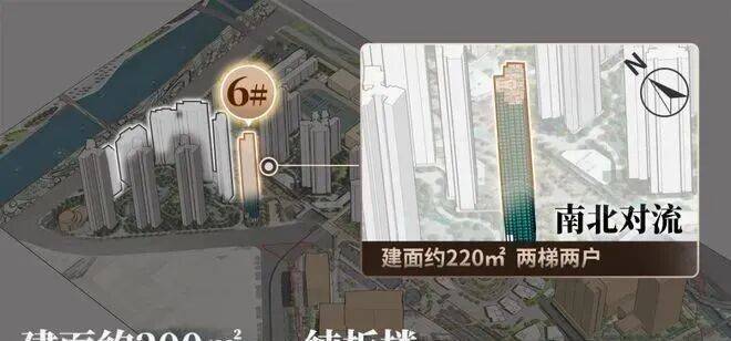 约220㎡大平层,户户四开间朝南,户户南北对流大方厅,户户两梯两户专属归家,户户双主套双阳台……