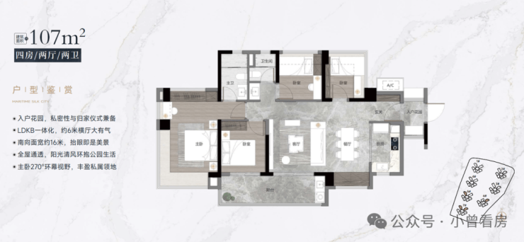 【107-108㎡四房二卫户型鉴赏】:400万内板块唯一四房