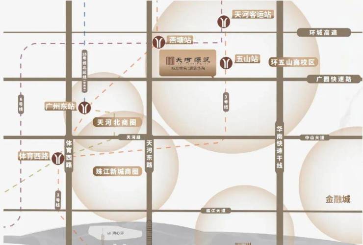 如果是依赖地铁出行的朋友,可能就没那么方便了,附近有这两个地铁口,3-6号线的交汇站--燕塘站和天河客运站,距离都差不多1.7公里,天河客运站地铁口可以在小区门口做400路公交,公交车每天工作时间15-30分钟不停的接驳到地铁口和项目直接发车。