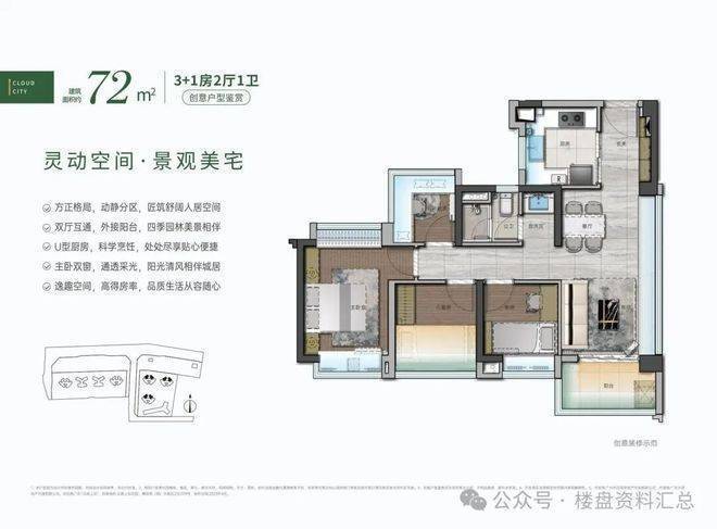 户型设计体现高空间利用率建筑理念。住宅产品面积段覆盖72平方米至143平方米区间。其中73平方米户型可实现多功能房间布局,空间可灵活改造为书房、儿童房或储物空间。户型内部强调南北通透结构,提升自然采光效率与空气流通效率。厨房与卫生间区域采用功能分区设计,提高家庭生活动线合理性。建筑材料选用高性能隔音系统与节能外墙体系,提升室内居住舒适度。