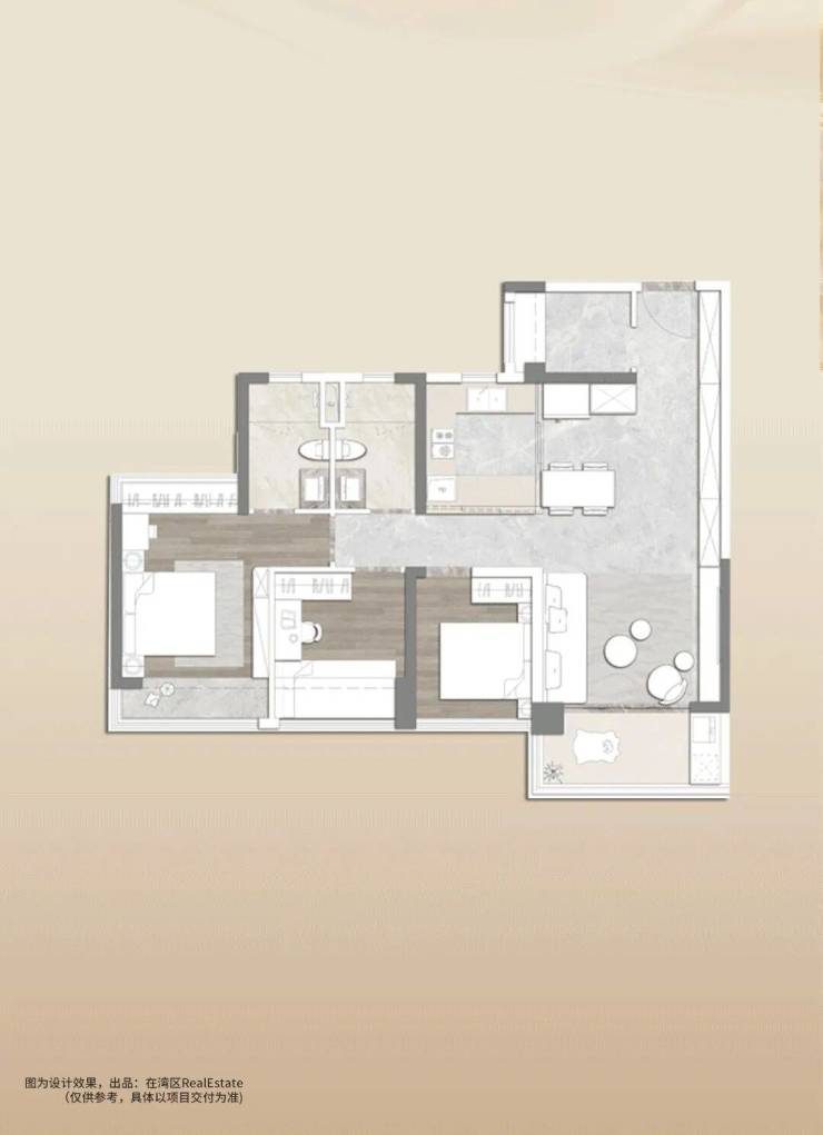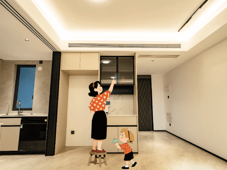 与客厅相连的多功能空间,随着家庭成员的增长,拓展出不同居住方案,真正实现 “全生命周期” 覆盖。