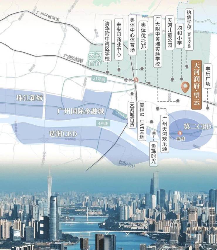 翻开地图,项目处于广州科技中轴的天河中央科创区,与珠江新城、金融城中央商务区双核驱动区域发展,地段优越。