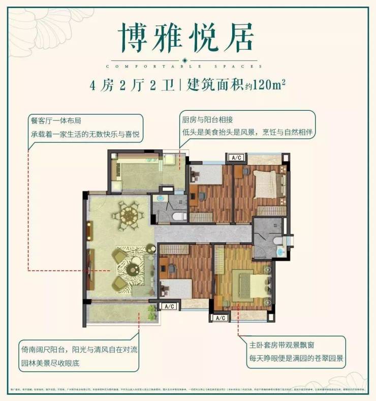 【户型面积】两房两厅一卫:64㎡别致雅居;三房两厅一卫:83㎡馨怡优居;三房两厅两卫:91㎡云绿景居;四房两厅两卫:119㎡博雅悦居。