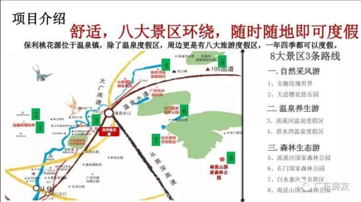 保利桃花源位于从化区温泉镇中大南方学院侧,环山而建,占地面积约30万方,是保利地产在广州首创的竖向联排设计的低密度原生态半山别墅。保利桃花源 105国道,可通过街口高速、京珠高速的等高速干线连接广州及珠江三角其他区域的。