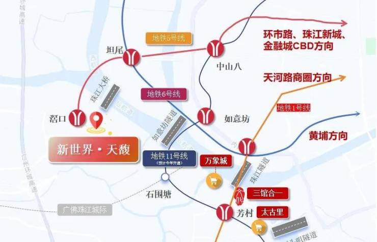 项目与5号线滘口站仅400米的距离,步行6分钟即可到达,12个站到达珠江新城,无需换乘,1个站换乘6号线以及11号线,去往越秀天河等地都非常方便,且地铁与项目之间还建了街区公园,为业主营造特有的归家仪式感,自驾的话,周边有4隧道环绕,珠江大桥等。