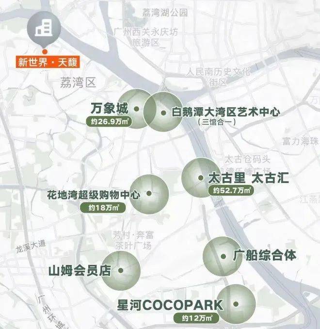 优点:产品好,户型使用率高,78平做了三房可望江,装修标准高,赠送的东西多,都是高端品牌,位置不错,临近白鹅潭,距离地铁5号线仅400米,还是始发站,不用担心坐地铁没位置坐,教育资源不错,3公里内有3所省一级学校,初中派位有广州四中、广雅中学等,性价比高,上车门槛低,总价280万即可买到三房,周边居住烟火气浓厚,很多配套都是现成的,部分户型可以望江,新世界的物业也还不错。