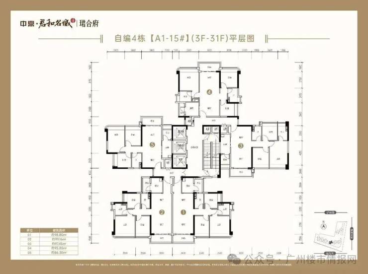 01 /02户型99方,03户型南向97方,04户型96方,05 户型87方