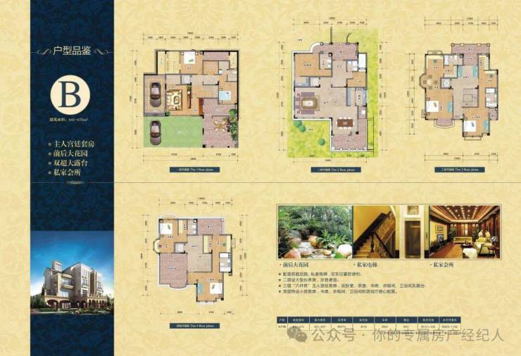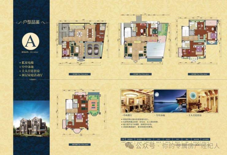 优质产品:485-641㎡经典别墅,前庭后院、私家电梯、双车位,部分带泳池,使用率达 123%;
