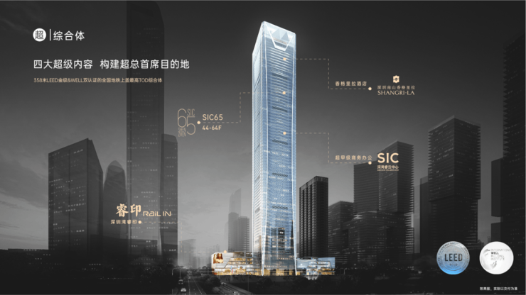 集商业、酒店、办公、SIC65四大旗舰业态,构建超总首席目的地