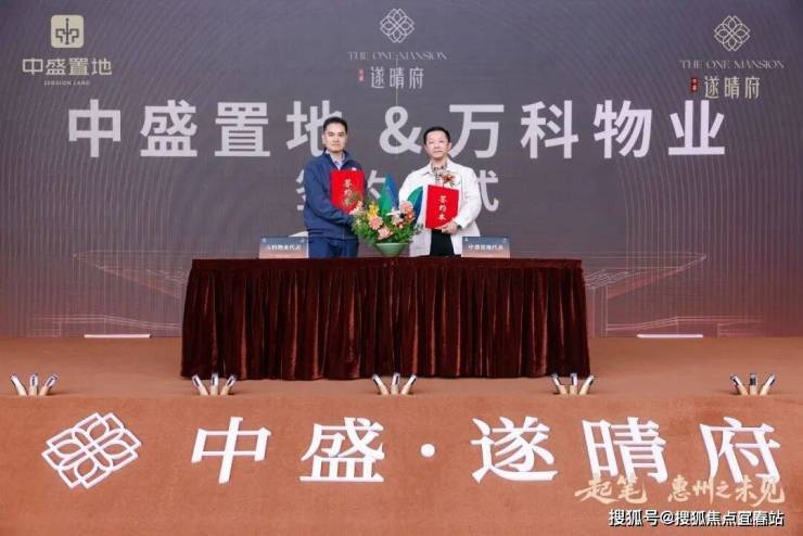随后,中盛·遂晴府与万科物业的战略签约仪式顺利举行,双方将联合成立合资子公司,万物云深圳战区惠州公司总经理王卓超代表万科物业方完成签约。此次合作标志着该项目将引入万科物业的服务体系,引发行业及现场嘉宾的广泛关注。