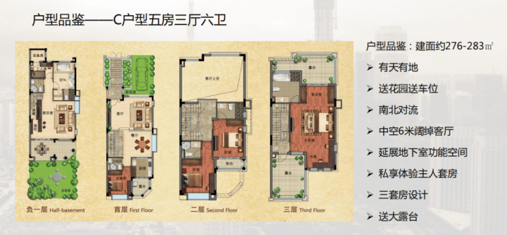 268-283㎡宜居别墅设计,全现楼交付,即买即享有。自有花园,给自己一方栽花品茗的天地院落。