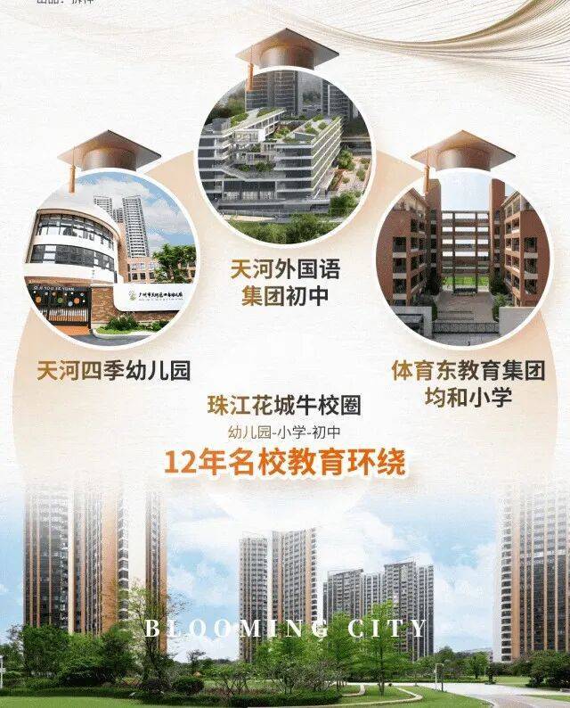 珠江花城的书包,升级为天河四季幼儿园+体育东均和小学+天外初中,从幼儿园-小学-初中12年教育一条龙配齐。