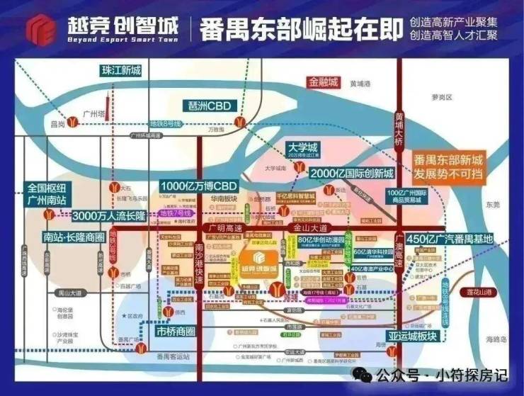 【位置】番禺东部新城,国际创新城核心区,位于番禺南村金山大道与东线路交口 500 米,与华南板块仅金山大道一路之隔,距离七星岗公园/时代倾城约 1.5 公里。
