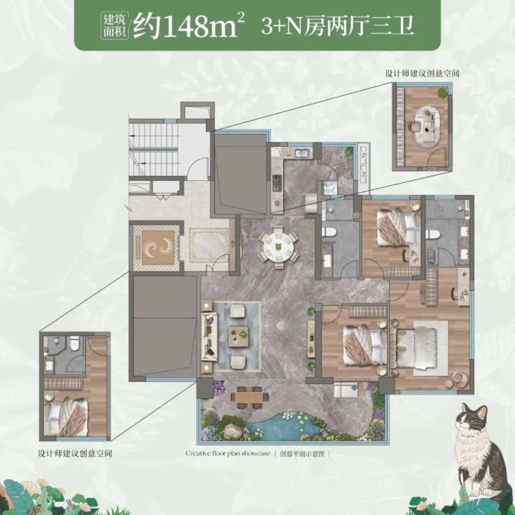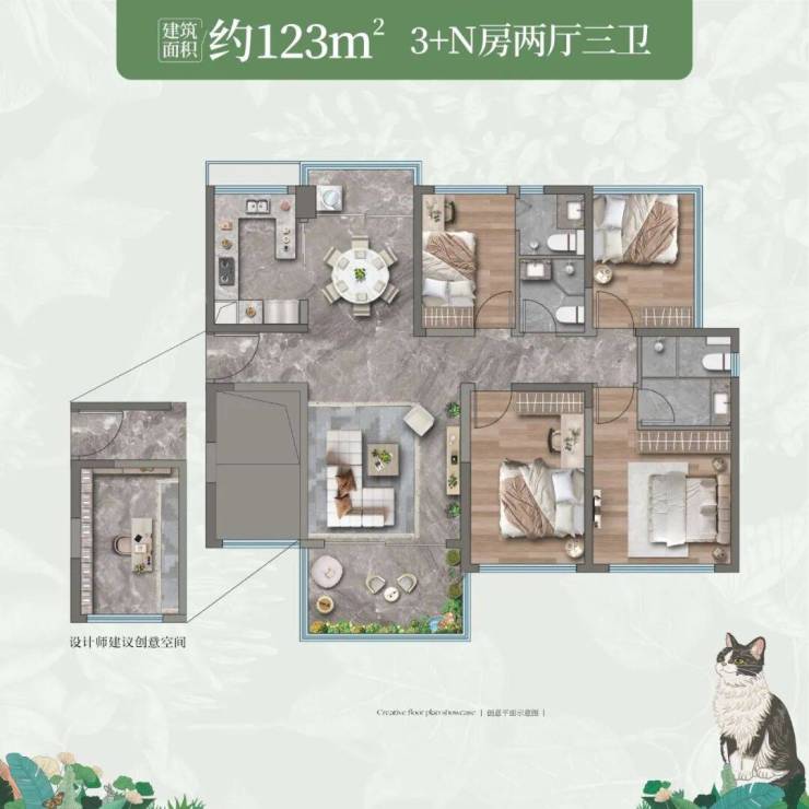 项目产品涵盖高层、小高层及叠墅,目前主推建面约106-123㎡低密洋房,以及堪称城区孤品的建面约148-166㎡大平层,高赠送率高拓户型,带空中花园,使用率基本达100%及以上。