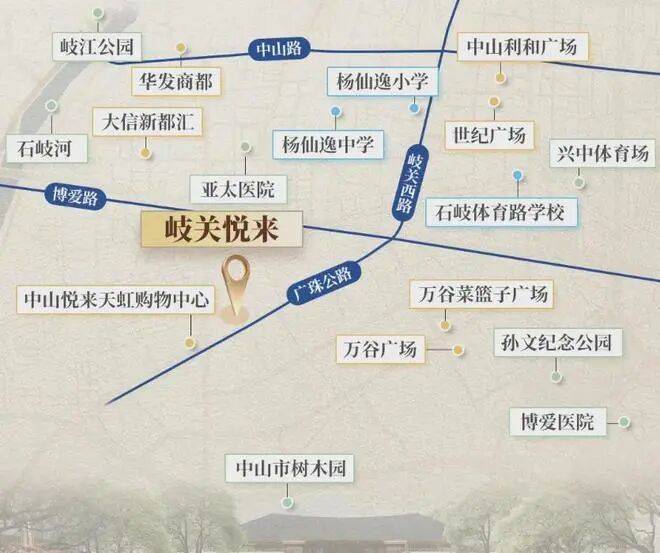 岐关·悦来,坐落在石岐、东区、南区的交汇地带,执掌博爱三路,更以一条岐关西路,平分石岐和东区。