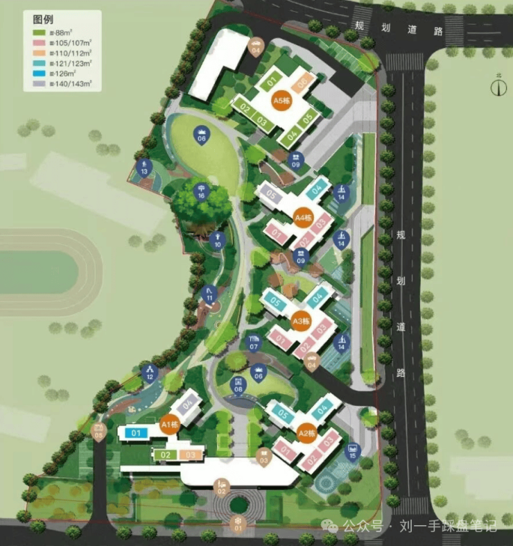 其中:A1栋,2梯4户;A2、3、4栋,2梯5户;A5栋,2梯6户