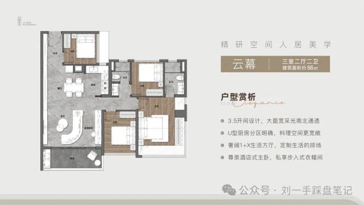 云筑上品规划了5栋住宅,为了采光最大化,所有楼栋都是采用蝶式塔楼的设计,新规后的项目,所以户型使用率方面都超过100%