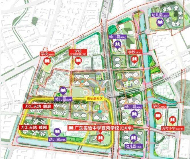 万科理想花地朗庭位于广州市荔湾区花地湾商务组团,处于白鹅潭与聚龙湾双太古商圈之间。根据《荔湾国土空间总体规划》,该区域被定位为广州未来最具发展潜力和想象空间的地段之一。
