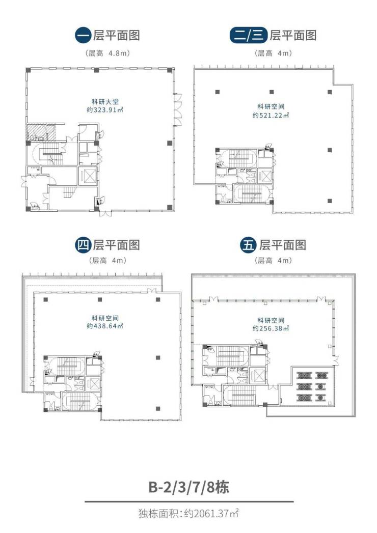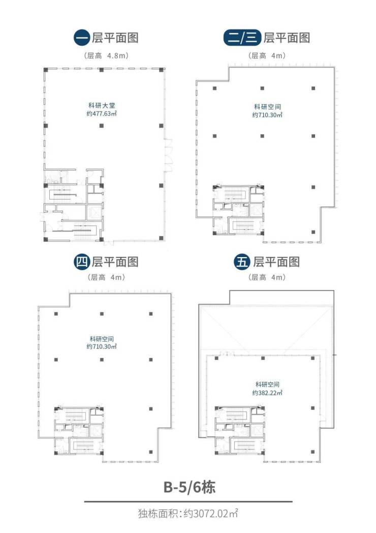 · 面积段:约2000㎡/栋,每栋4层,每层约500㎡