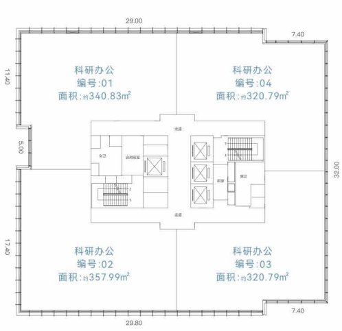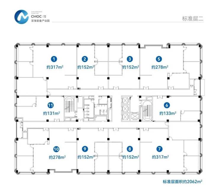 · 标准层单位租赁面积:约320-360㎡