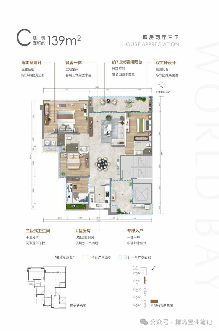 三亚精装瞰海实景现房|建筑面积约115-139㎡纯板大平层