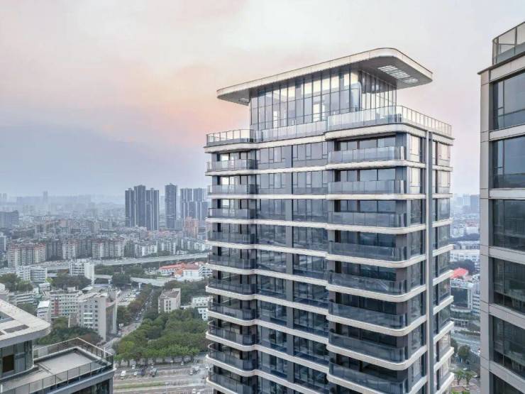 粤海・云港城深度呼应白云山肌理,以山形为设计蓝本,采用中间高、南北阶梯式递减的建筑群布局,将 150 米长的城市天际线铺展为徐徐展开的 “画卷”,让建筑形态与山景相映,恍若一幅立体的建筑山水图,实现城与山的自然共生。