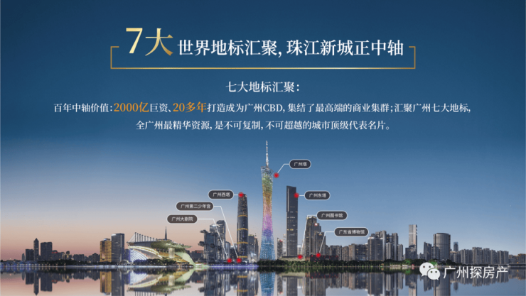 珠江新城20多年打造成为广州CBD,总部企业占广州3成,世界500强投资项目占广州市超5成,是世界城市集群核动力。同时,这里集结了最高端的商业集群;汇聚广州七大地标,是不可复制,不可超越的城市顶级代表名片。