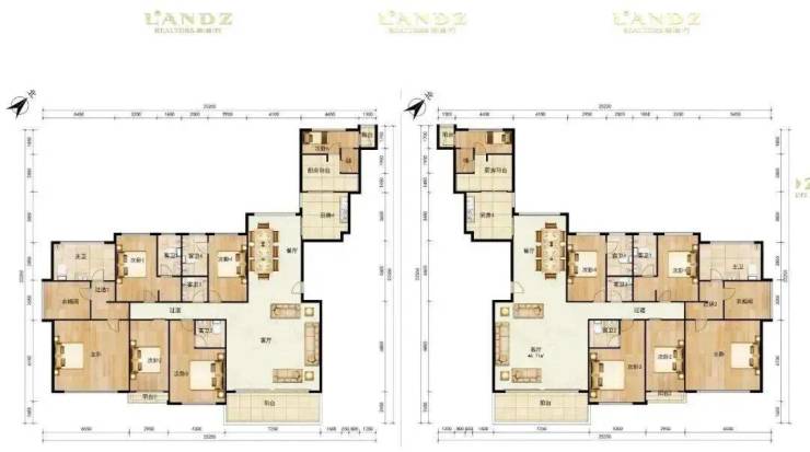 4房(2套房),客厅开间达到6.1米,实际得房率可达95%,不管是得房率还是产品尺度在同类型产品中都占有较大优势。