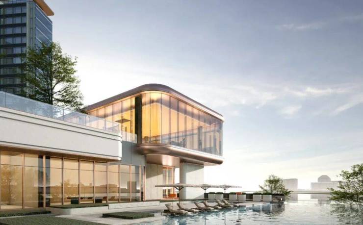 一层临波:都会门庭,江风入境——百米海派轻奢归家门庭,融仪式感与松弛感于一体;