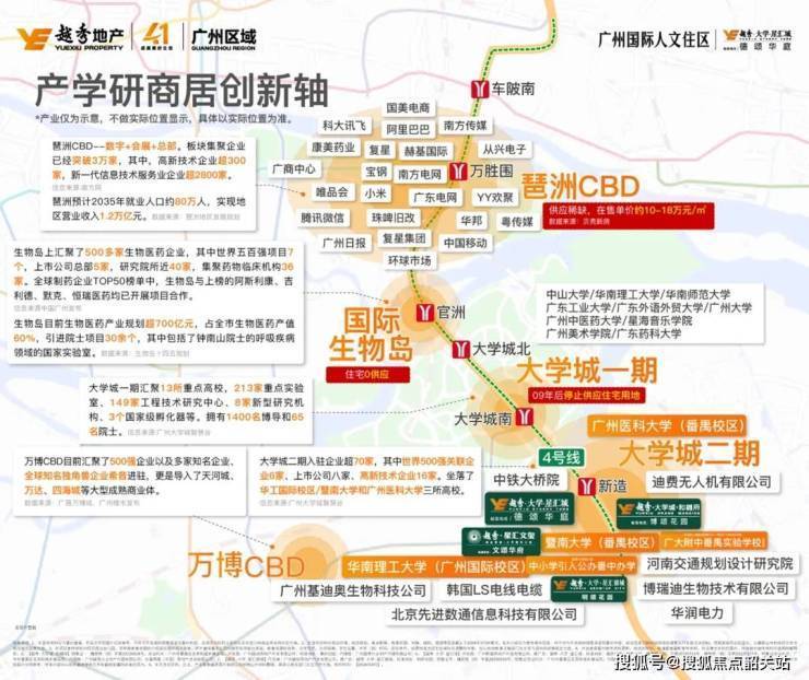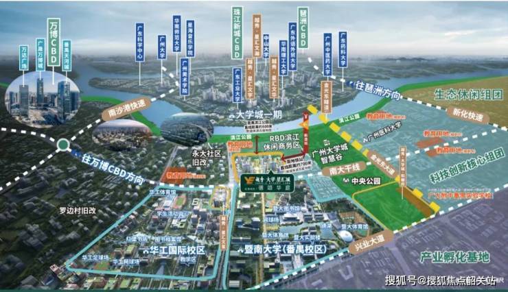 越秀·大学·星汇城位于广州大学城南侧,紧邻地铁4号线新造站,交通便利,是大学城二期的核心位置。东边接壤琶洲、广州国际创新城;南面通往南沙自贸区;西边通过南大干线与万博CBD紧密相连;北面则是大学城一期与市中心相连的便捷通道。整个板块不仅具备完善的交通网络,更享有丰富的产业资源,包括高新技术产业与教育科研中心,吸引了大量高收入人群,是广州未来发展的重要支撑。
