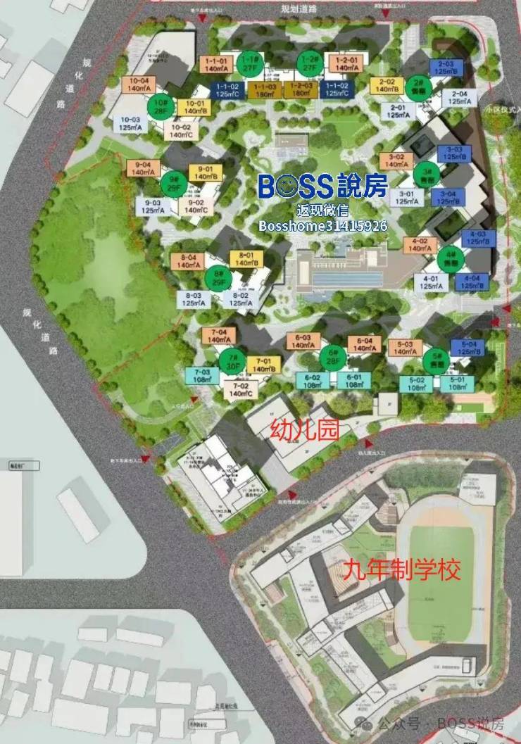 另外小区还有配建12班幼儿园+45班九年一贯制学校,和部分底商;
