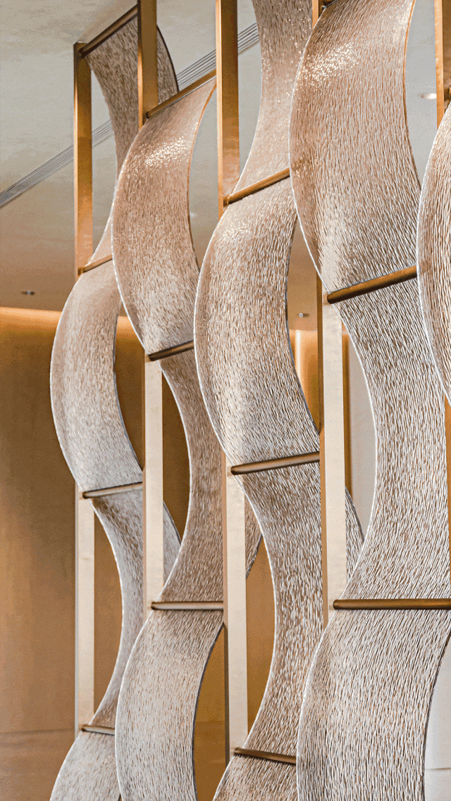在打造过程中,设计师便把珠水流动的状态,融入到了示范区的空间设计中。