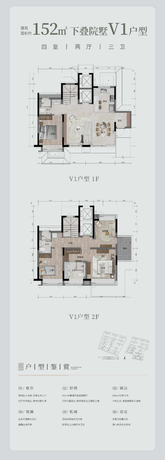 [在售户型]:建筑面积约152-160m²温泉叠墅
