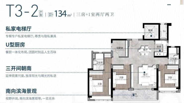 134㎡ 三房+1室两厅两卫 户型(平层)