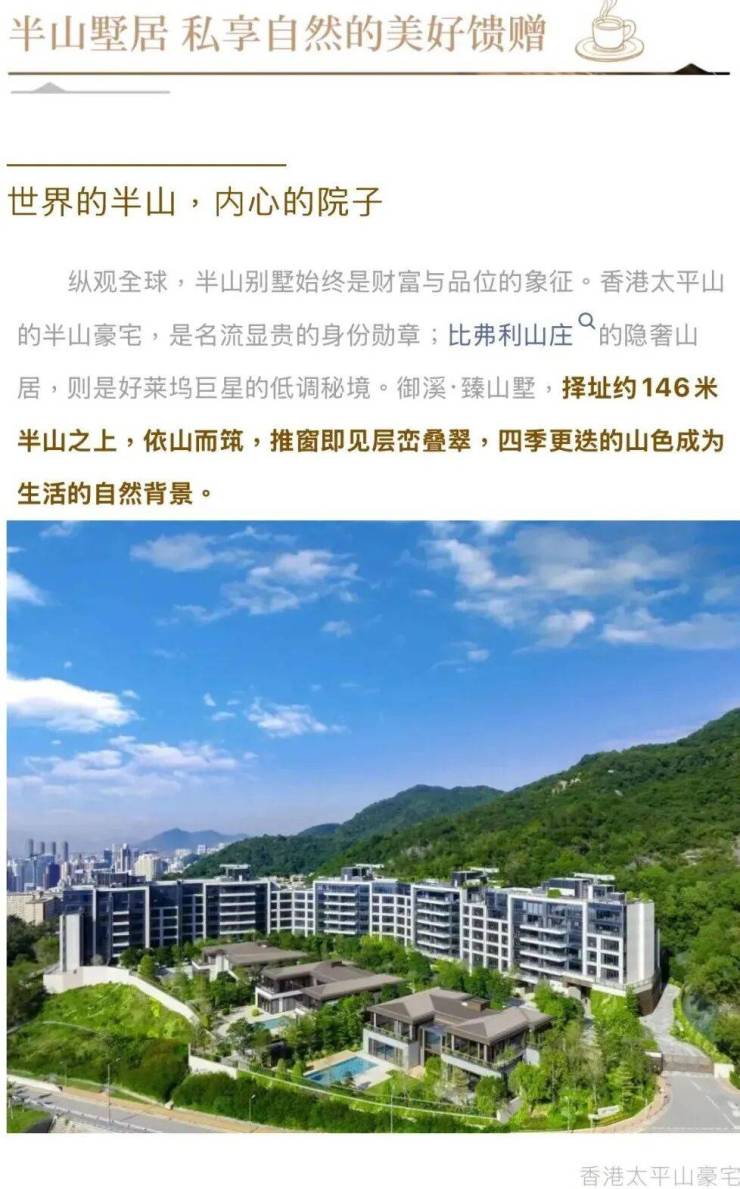 在最新的臻山墅宣传稿里“第三中轴半山院墅”,自称是“广州第三中轴核心”、“知识城”二期,稿件处处可见“比弗利庄园”、“香港太平山豪宅”等这种顶豪关键词。