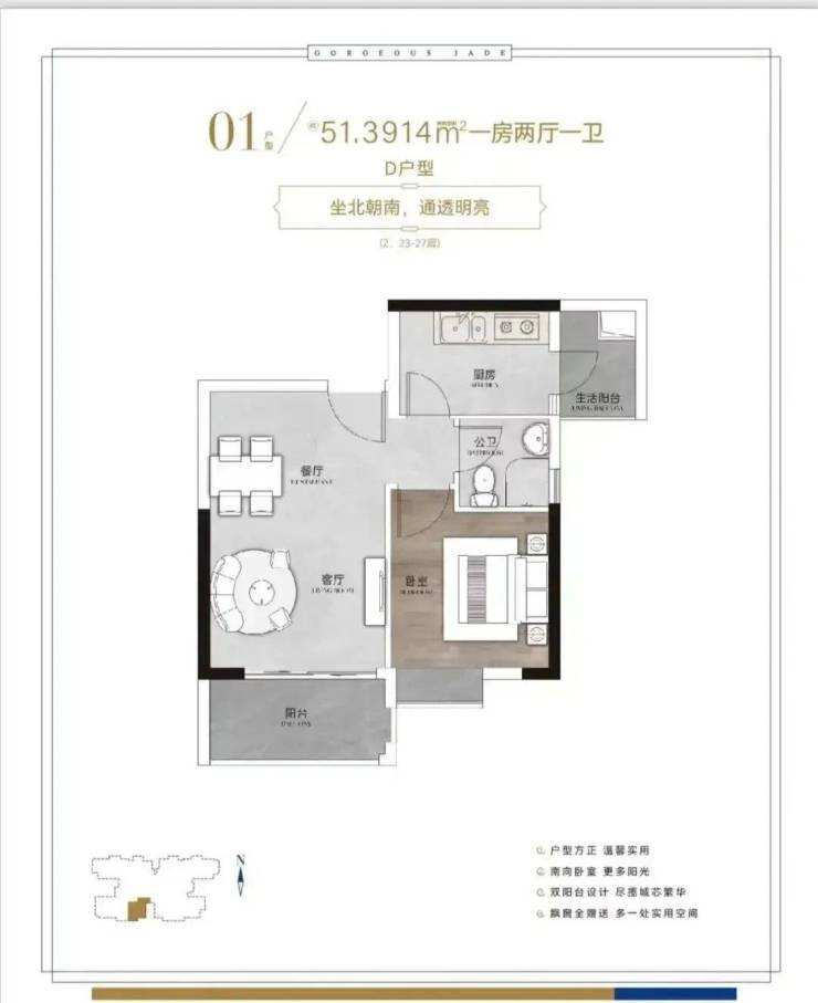 51㎡的 1 室 1 厅总价约 194 万元,户型方正,客厅带小阳台,适合单身人士或新婚夫妻过渡,日常打理起来很方便。