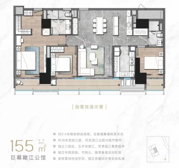 一线江景奢宅:无遮挡精工江景宅邸,静繁随心尽享御生活;