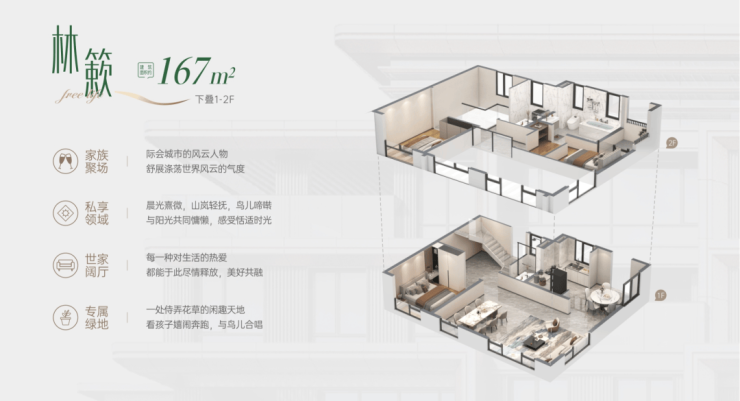 1-2F: 167平下叠+175平下叠+167平下叠(赠送地下室)