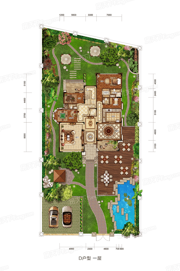 花园面积:793-1027㎡赠送面积:993-1227㎡