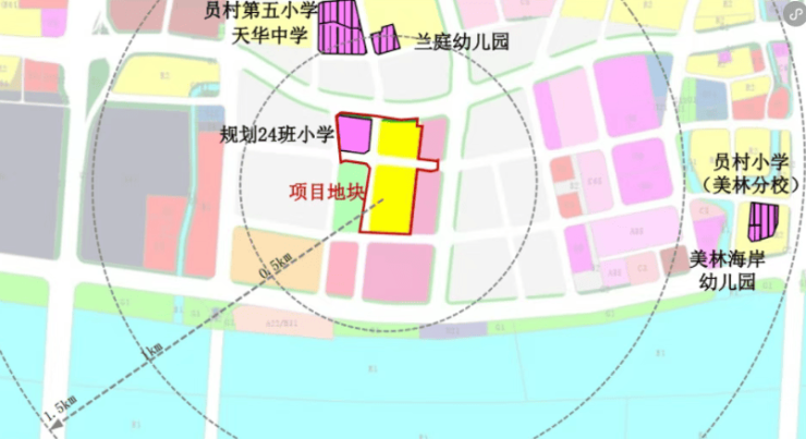 另外,项目1.5公里范围内有员村第五小学、天华中学、兰庭幼儿园、员村小学(美林分校)、美林海岸幼儿园等